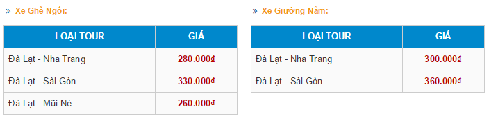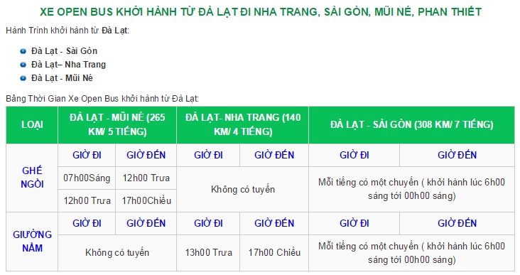 Lịch trình: Đà Lạt - Sài Gòn, Đà Lạt - Nha Trang, Đà Lạt - Mũi Né
