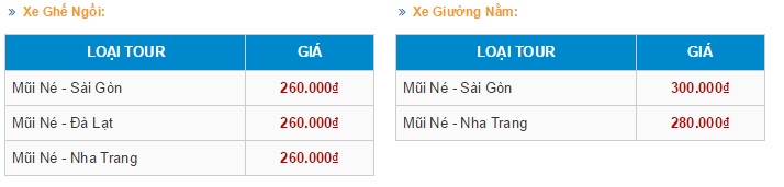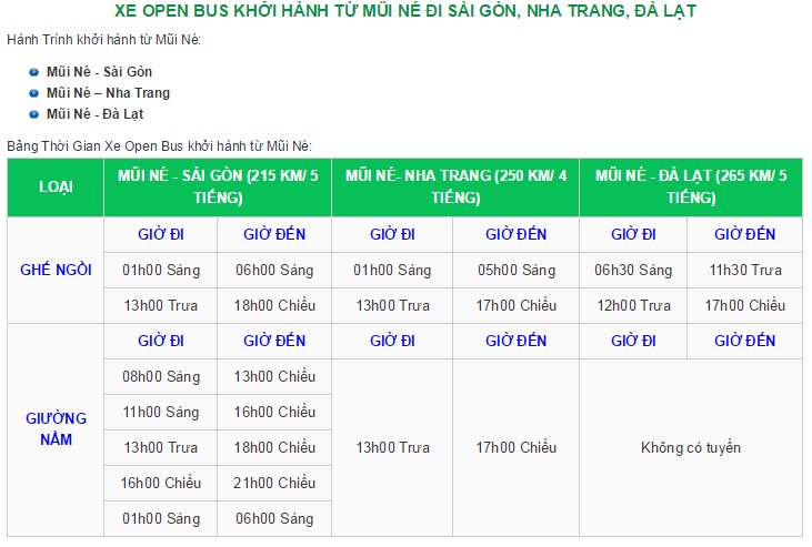 Lịch trình: Mũi Né - Sài Gòn, Mũi Né - Đà Lạt, Mũi Né - Nha Trang