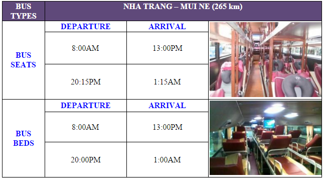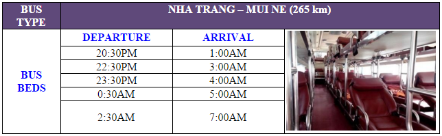 Departure time: morning – afternoon – midnight Arrival time: afternoon – evening – early morning Listed price: 150,000 VND |
