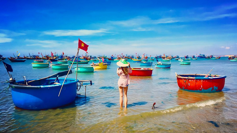 If the Fairy Stream offers a "celestial" escape, Mui Ne Fishing Village brings you back to the rustic, vibrant heartbeat of Binh Thuan's coastline. This is a must-visit destination to truly discover Mui Ne, where colorful round basket boats dance upon the waves.