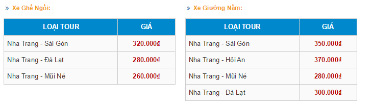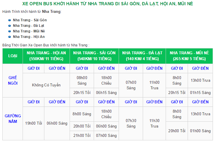 Schedule: Nha Trang - Saigon, Nha Trang - Da Lat, Nha Trang - Mui Ne, Nha Trang - Hoi An